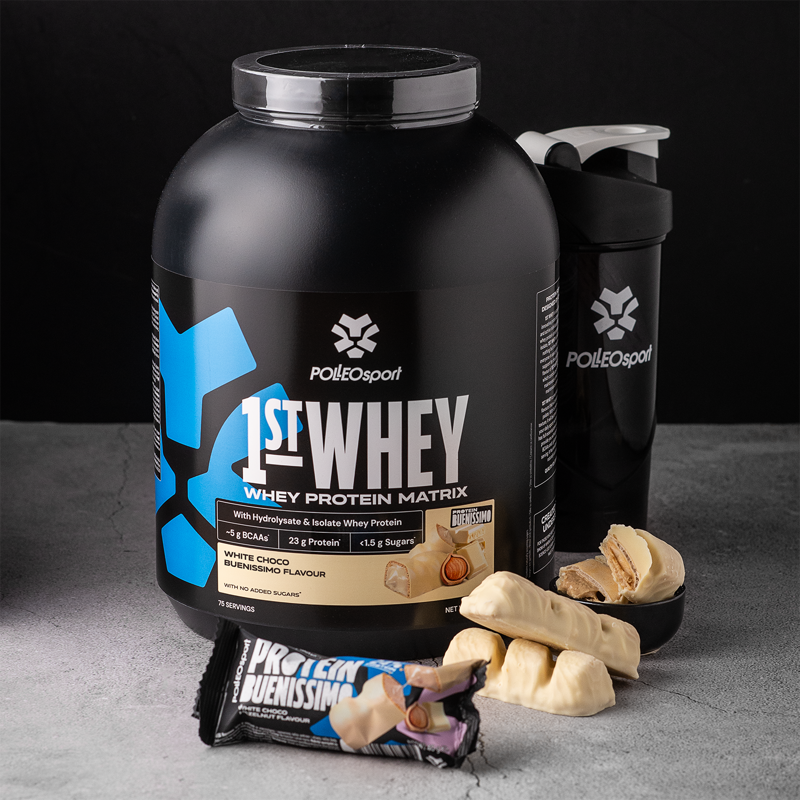 Nach einem intensiven Training brauchen deine Muskeln Treibstoff für Wachstum und Regeneration. Polleo 1st Whey bringt eine völlig neue Generation von Whey-Proteinen – eine Kombination aus Konzentrat, Isolat und Hydrolysat, angereichert mit BCAA und L-Glutamin, entwickelt, um deine hart erarbeiteten Muskeln zu unterstützen.